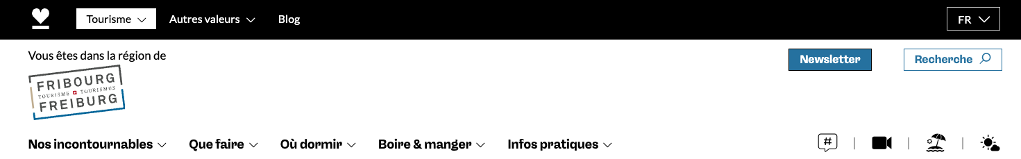 Cette substitution vise à réduire la présence visuelle de la marque Fribourg pour éviter qu’elle n’entre en concurrence avec les marques ou identités des régions touristiques ou des contenus institutionnels.