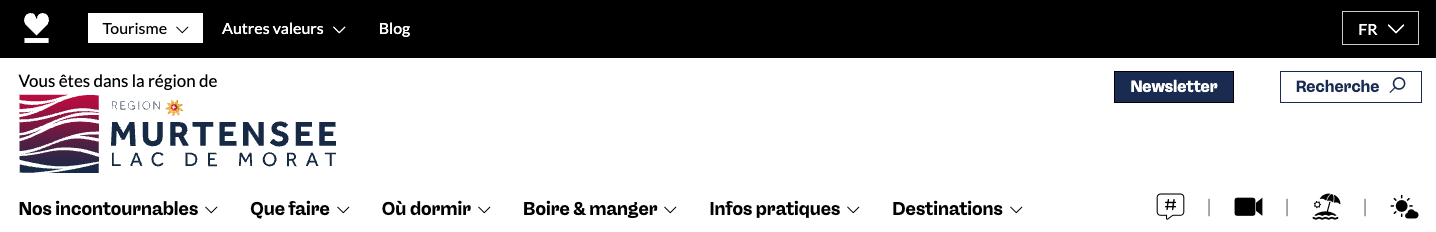 Morat Tourisme Logo utilisé dans toutes les langues Télécharger le logo Code couleur RVB: #1f305c Comportement du logo en version desktop et mobile Home page de Région Lac de Morat