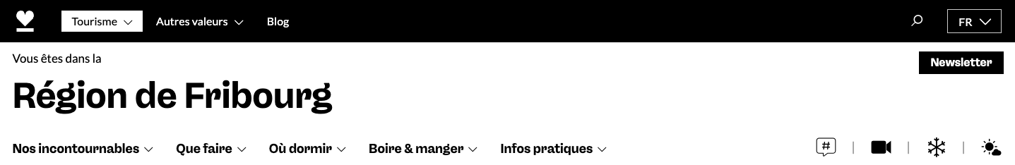 Le logo de la Région de Fribourg a été conçu en utilisant la police de caractère « Neue Freigeist Bold ». Le logo existe en trois langues – français, allemand et anglais et s’adapte à la langue du site sélectionnée.